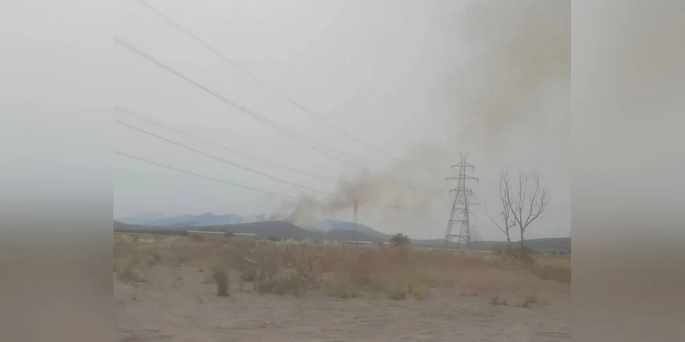 Η φωτιά καίει σε χαμηλή βλάστηση και φέρνει ανησυχίες μήπως υπήρξε έκρηξη πρίν ξέσπασε η πυρκαγιά.